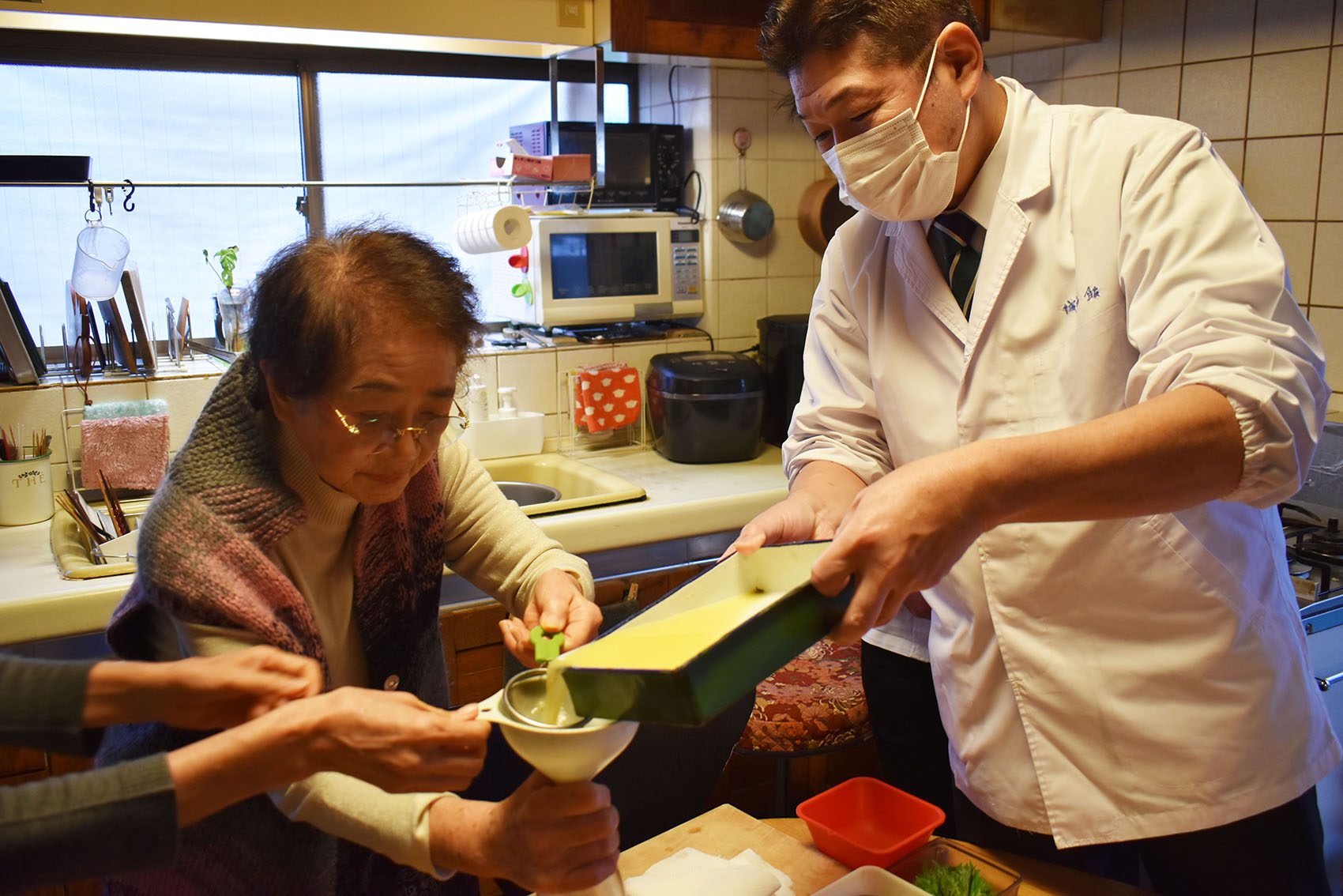 高知の郷土料理「皿鉢料理」に欠かせない、松﨑先生も大好きな「鯖ずし」。古くから県内でよく獲れた鯖は、その昔山村に運ぶ為水揚げしてすぐに捌き、濃い塩をもんで鮮度を保っていました。高知では「山の鯖ずしがうまい」という定説があり、その理由を科学的に研究したところ、鮮度を保つため水揚げした直後に塩振りをする工程が味わいに良い影響をもたらしていることが明らかになりました。山村ではお米がご馳走だった為、ハレの日の『おきゃく』で作る鯖ずしには酢飯をこぼれんばかりに入れるのが昔からのおもてなし。松﨑先生特製の鯖ずしでは、ゆの酢(ゆず100%の果汁)をたっぷりと使用するのが特徴です。